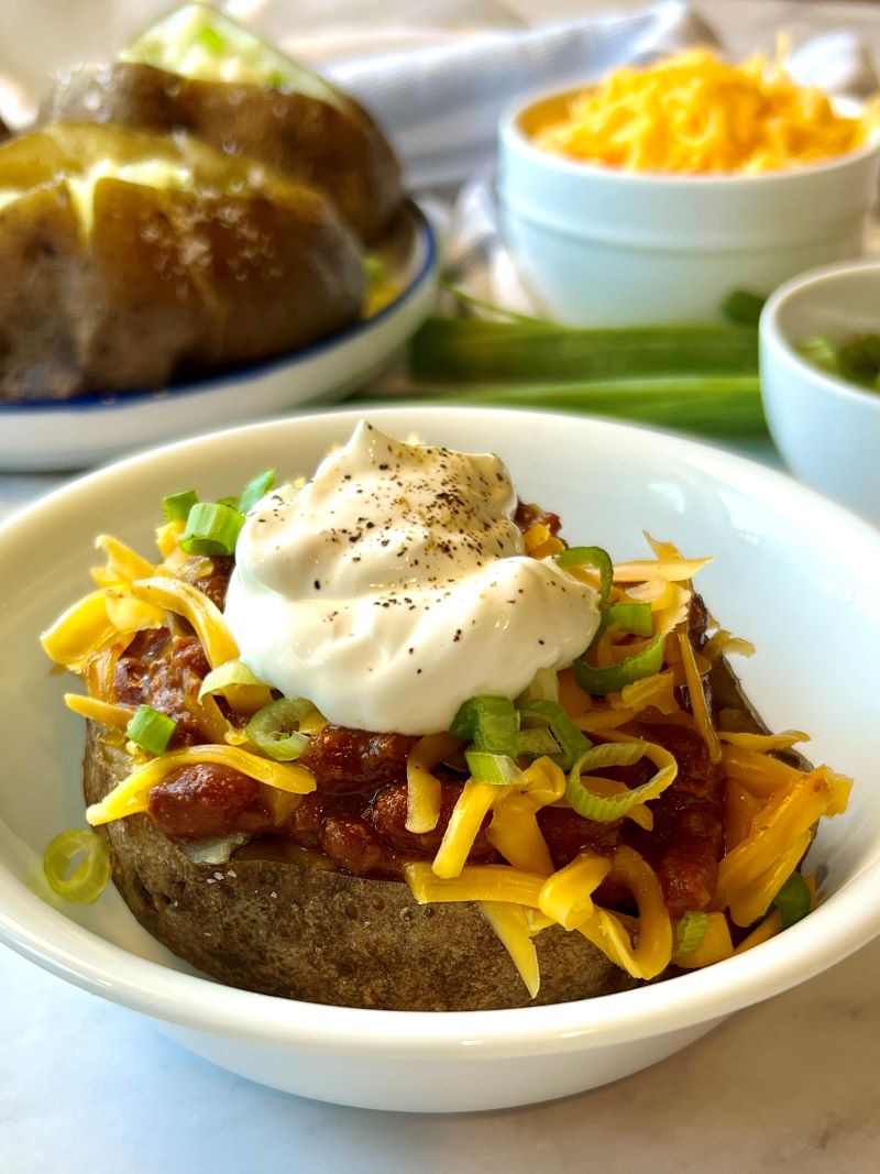 And let’s not forget just how versatile they are; the possibilities are endless. Keep it classic with butter, salt, and pepper, or load them up with chili, melted cheese, sour cream, and green onions for the ultimate comfort food supper.