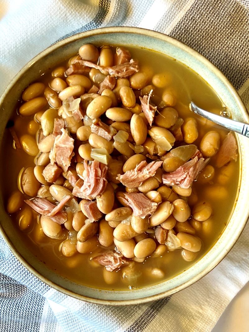 - đź’ˇUse a meaty ham bone. If you have a ham bone, this would be an ideal recipe to use it. This will offer a richer flavor to the beans. If the ham bone still has a substantial amount of meat, you’ll want to pull it off and stir it into the beans after the cooking time.