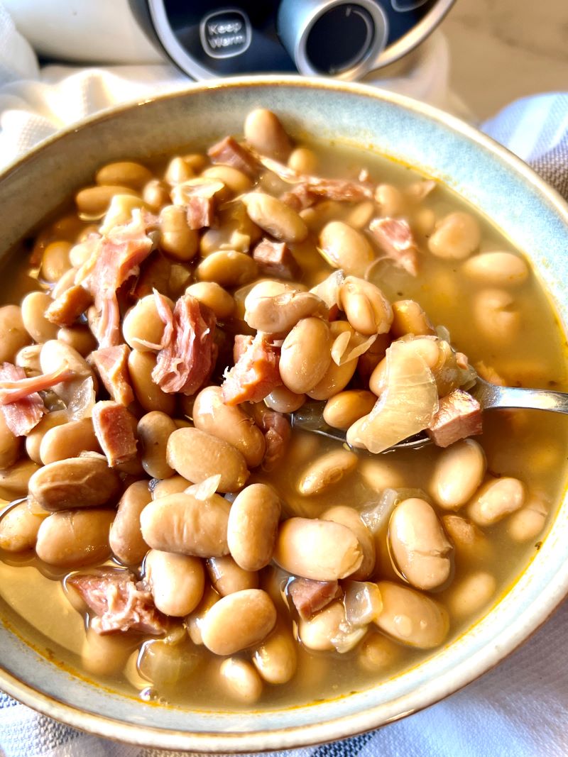 - Use a meaty ham bone. If you have a ham bone, this would be an ideal recipe to use it. This will offer a richer flavor to the beans. If the ham bone still has a substantial amount of meat, you’ll want to pull it off and add it to the beans after the cooking time.