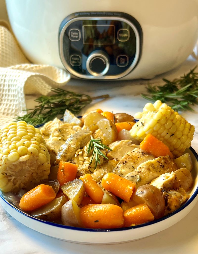 When the heat is on, the last thing you want to do is turn on the oven. Slow Cooker Summer Chicken recipe is your go-to for warm weather meals. Packed with juicy chicken breasts, sweet corn on the cob, tender carrots, hearty potatoes, and fragrant fresh herbs, this one-pot dish is healthy, easy, and full of seasonal flavor.