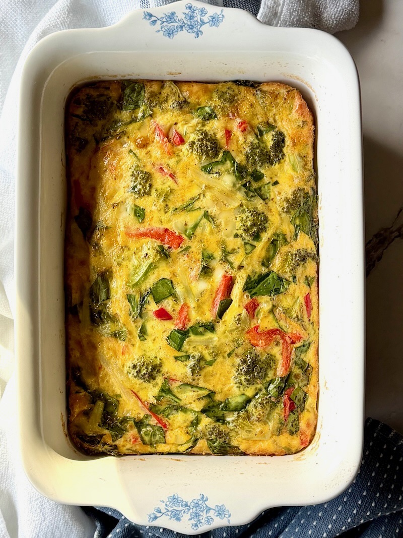 After the holidays and getting back into work routines, it’s nice to have a simple, wholesome option ready for the mornings. This casserole reheats beautifully in the microwave, or you can pop it in the oven while you get ready for the day. The eggs stay tender and fluffy, while the vegetables still have a pleasant bite.